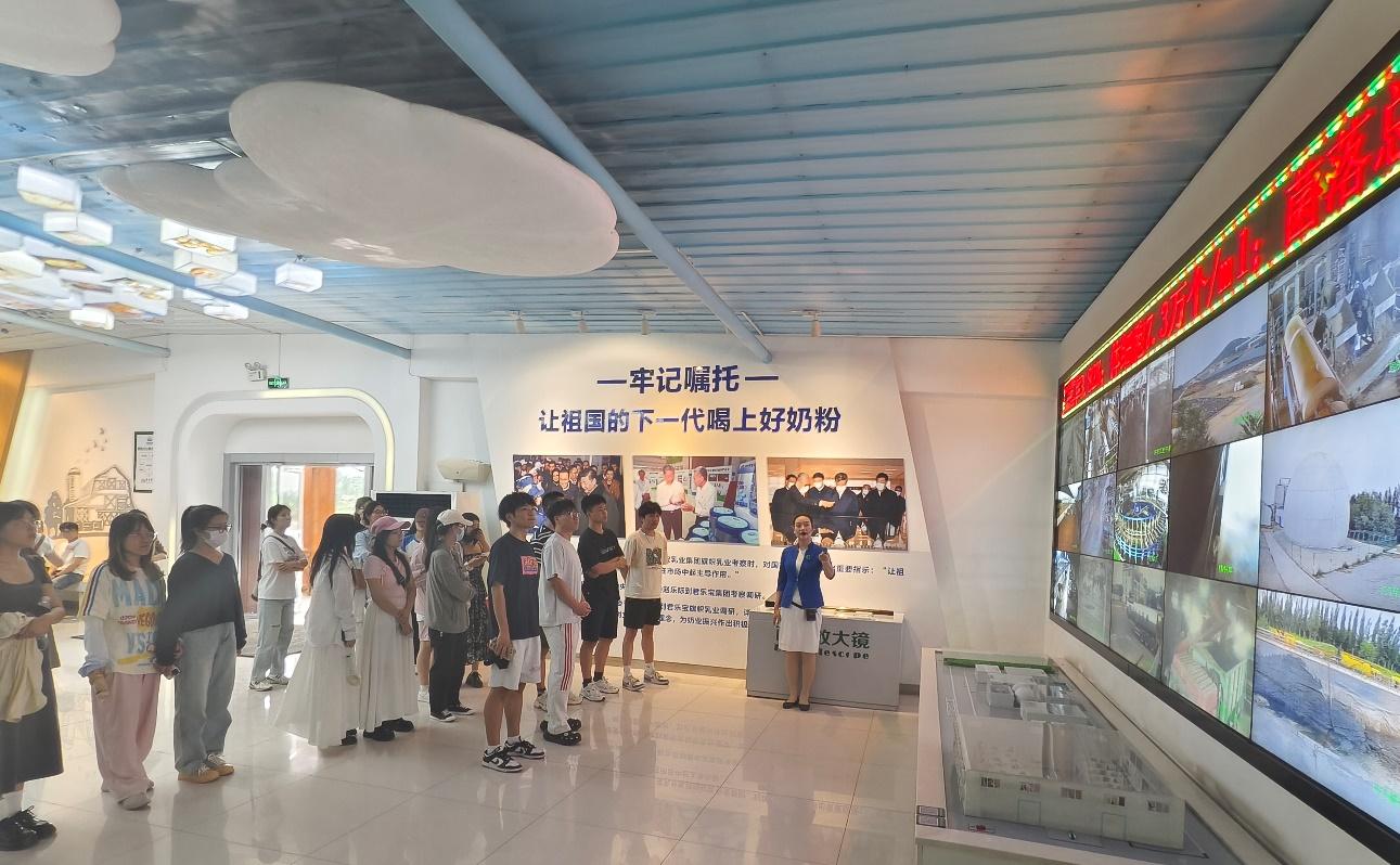 君乐宝工作人员对beat365官网师生们的到来表示了热烈欢迎。君乐宝的讲解员给我们详细的介绍了集团发展历程和区域规划。君乐宝乳业集团成立于1995年,位于石家庄鹿泉区石铜路36号,28年来始终专注于奶业发展,现已发展成为河北省最大的乳业公司、国家级高新科技企业以及农业化国家重点龙头企业,业务范围包括婴幼儿奶粉、酸奶、低温鲜奶、常温液态奶及奶牛育种、牧业、草业等板块,建立起涵盖奶业全产业链的运营布局,上下游协同发展,为消费者提供营养、健康、安全的乳制品。