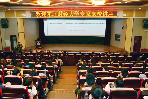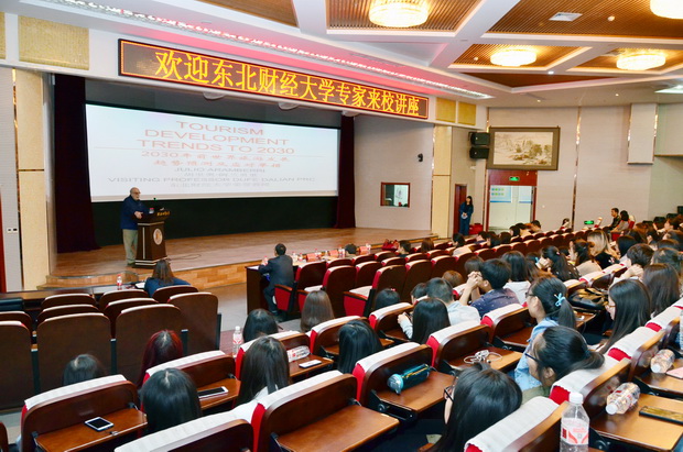 4月21日上午,东北财经大学荣誉教授、国际旅游学术界著名学者、国际旅游科学院(IAST)副主席胡里奥.阿兰贝里(Julio Aramberri)教授和东北财经大学旅游与酒店管理学院博士生导师谢彦君教授应邀来校做学术交流。胡里奥.阿兰贝里教授作了题为《TOURISM DEVELOPMENT TRENDS TO 2030(2030年前世界旅游发展趋势预测及应对举措)》专题讲座,谢彦君教授作了题为《姆庇之家:族群认同视角下的旅游开发》专题讲座,讲座在春秋讲堂举行,商学院院长苗泽华主持,近300名师生及企业代表聆听了讲座。