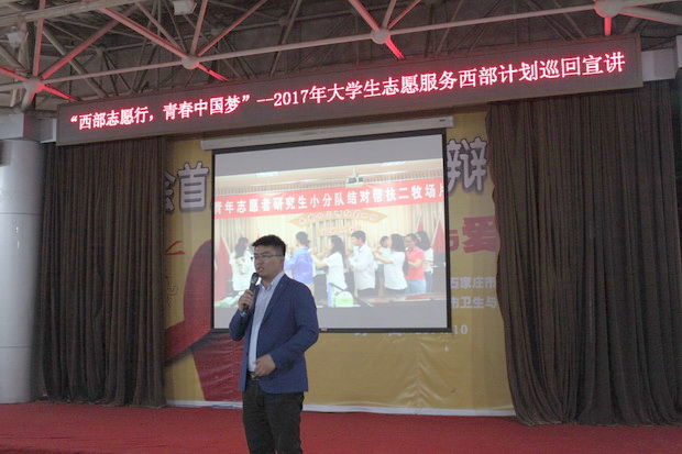 4月17日下午,2017年大学生志愿服务西部计划巡回宣讲报告会在beat365官网科技报告厅举办,本次报告会由共青团河北省委、西部计划河北省项目办主办,beat365官网承办。团省委志愿者工作部王慧杰、新疆兵团青联副秘书长周玉龙、西部计划优秀志愿者及beat365官网200余名师生参加了报告会。