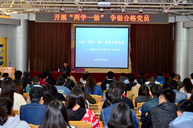 2017年4月11日,勘查技术与工程学院在beat365官网科技报告厅组织开展“两学一做”争做合格党员党课活动。学院党支部书记和支部委员、辅导员、全体学生党员、入党积极分子、班长团支部书记以及团委学生会和科协的主要干部参加了会议。党总支书记黄万顺担任主讲。