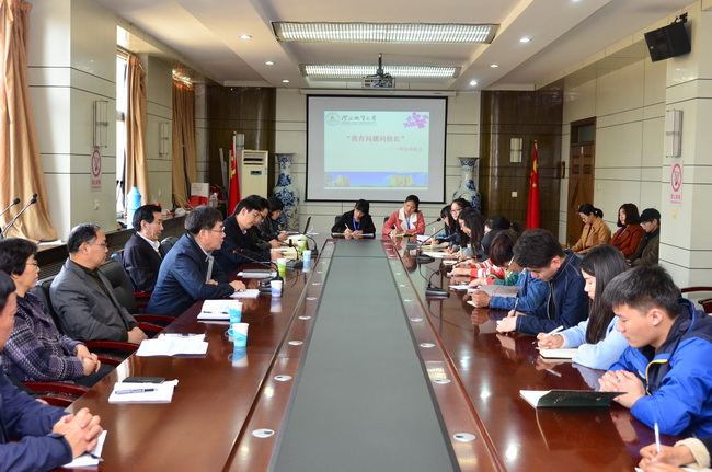 座谈会上,与会同学积极发言、气氛热烈和谐,畅所欲言地反映情况,围绕“学校更名后的发展前景”、“新校区规划建设”、“学校教学改革、学分制改革”、“就业政策解读及措施”、“后勤设施建设”、“校园安全”等热点话题以及同学们普遍关注的问题,提出了许多意见和建议,校领导及分管职能部门负责人仔细倾听,详细记录,并针对同学们提出的问题进行了耐心细致的解答。