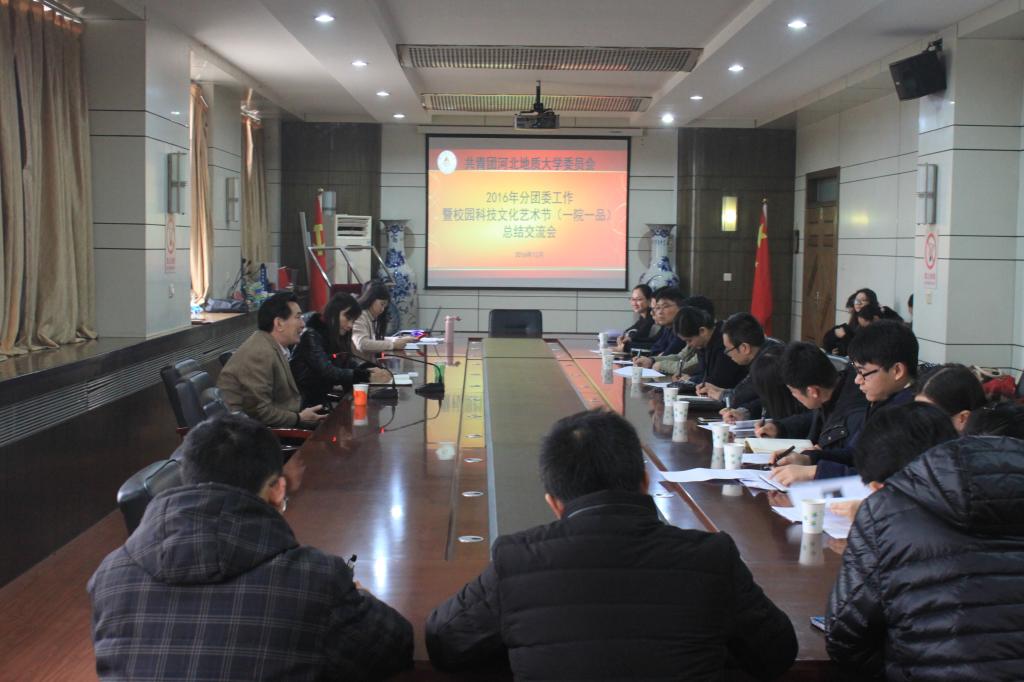 2016年12月20日下午,2016年共青团工作暨校园科技文化艺术节一院一品展示暨年终总结交流会在主楼四楼会议室如期举行。党委副书记刘耀辉出席会议并讲话。校团委书记蔡建英主持会议。