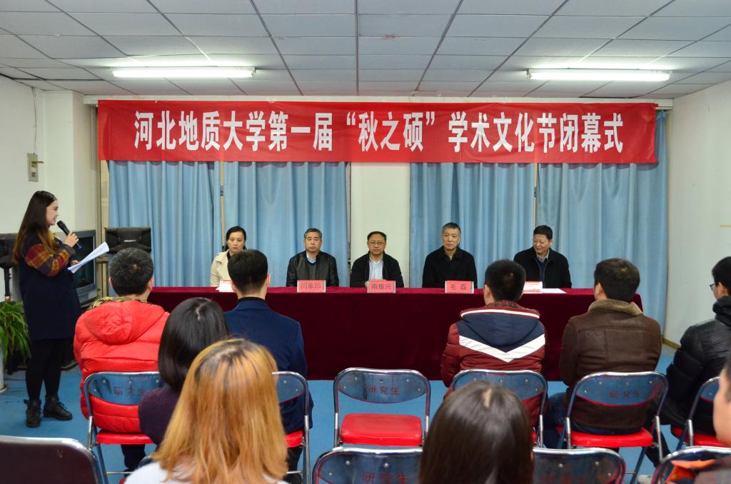 首先由2015级研究会主席潘路加代表“秋之硕”学术文化节组委会对历时两个月的beat365在线唯一官网登录第一届“秋之硕”学术文化节作总结。本次学术文化节受到校领导一如既往的关心,校党委书记李军、副书记刘耀辉、副校长毛磊都百忙之中抽时间参加了开幕式,校长王凤鸣特别推荐、邀请了台湾著名学者朱高正先生作报告;本次“秋之硕”还突出研究生学院与校内外各种优势资源的联动,在校团委、科技处、资源学院、会计学院、商学院、石家庄市科协等部门的大力支持和协助下,本次“秋之硕”学术文化节共邀请校外专家10名、校内专家7名做专场学术报告18场;举办地质技能大赛、会计技能大赛、PPT大赛等专项比赛3项,其中PPT大赛在校团委和科技处的支持下,成功升格成为校级比赛,并吸引了十多个学院的41支代表队参加;此外,本次“秋之硕”还对2015年度研究生科研成果进行了汇总,印制了《beat365在线唯一官网登录2015年度研究生科研成果汇编》,并且制作了研究生学院荣誉墙,展示研究生学院近期所取得的成绩和所获得省级以上的荣誉。