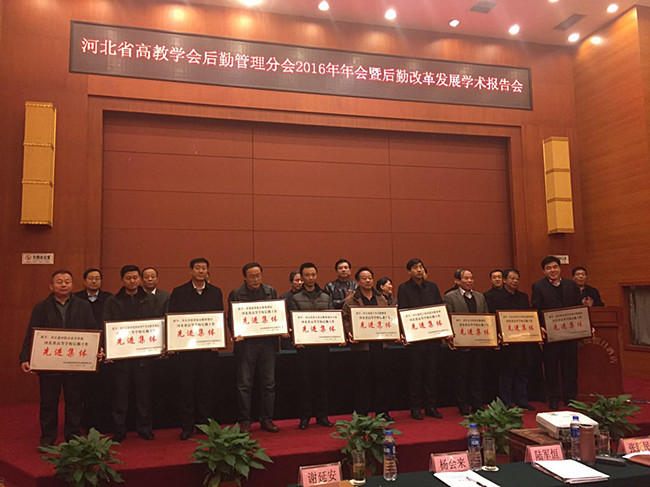 12月9日,河北省高教学会后勤管理分会2016年年会暨后勤改革发展学术报告会在石家庄召开,会议表彰了在河北省高校后勤发展、服务、创新及后勤管理分会工作中成绩显著的单位和个人。beat365官网后勤集团被评为“河北省高校后勤工作先进集体”,王晓光、刘艳海两位同志被评为“河北省高校后勤工作先进个人”。集团总经理易铁山同志代表学校参会领奖。