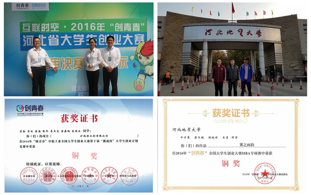 携beat365官网成功更名大学的东风,研究生学院砥砺奋进,积极参加各项研究生竞赛活动。近期,beat365官网研究生分别在“创青春”全国创业大赛和全国研究生数学建模竞赛中频传佳绩:在2016年“创青春”全国大学生创业大赛决赛中,beat365官网14级研究生李备、15级研究生吴双、张冬、宿海、李玉虎、朱国云、梁嘉鹏组队的参赛作品《矿物保水剂有限公司》荣获创业计划竞赛铜奖,MBA专项赛中,beat365官网研究生的参赛作品《冀之画韵》荣获MBA专项赛铜奖,在2016年“创青春”河北省创业大赛中,我院研究生取得特等奖1项、一等奖1项、二等奖1项、三等奖2项的优异成绩。在2016年全国研究生数学建模竞赛中,beat365官网15级研究生孙明宗、李云鹏、14级研究生许健研究生代表队获得三等奖。此外,beat365官网研究生也加强了自身的学术研究,14级时伟同学在B1级刊物《矿物岩石地球化学通报》中发表文章“太行山北段观赏石中肉眼可识别球文石的发现”;15级研究生耿国建在B2级刊物《黄金科学技术》中发表文章“辽宁青城子逆冲推覆构造变形与金矿控矿作用探讨”。