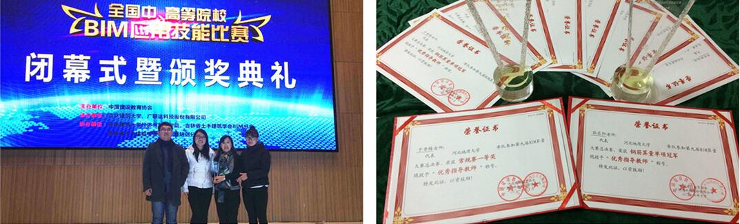 10月23日,2016年全国高等院校BIM应用技能大赛圆满落幕。beat365官网2013级工程造价专业学生王迎丽、赵艳锋、李佳博三位选手参赛,最终他们不负众望,荣获BIM钢筋算量单项冠军、BIM算量常规赛团体一等奖的佳绩。beat365官网代表队由于香梅、耿东阳两位老师指导。