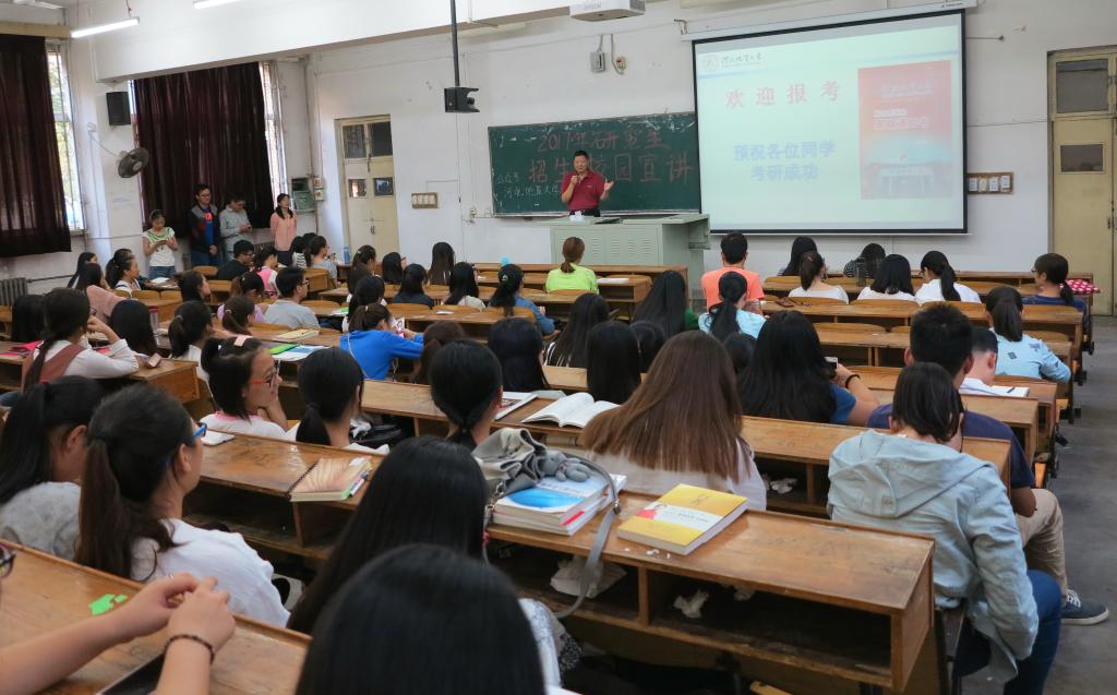2017年研究生招生考试报名工作即将开始,为了鼓励学生考研,帮助同学们了解考研政策,研究生学院于9月19日下午16:00在2号教学楼111教室举行了研究生招生校园宣讲会。此次活动设置了考研策略宣讲、考研经验分享、政策咨询等环节,吸引了beat365官网众多在校本科生前来参加,现场气氛热烈。宣讲会由研招办郑艳老师主持。