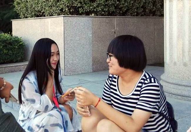 法政学院新生(右一)接受采访