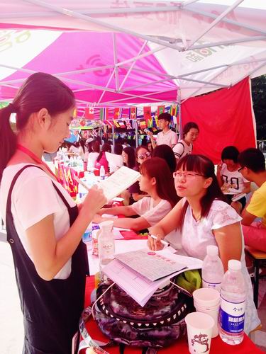 太阳当空照,正如各学院学生会迎新工作人员的热情笑脸。新生签到、宿舍钥匙分配、饭卡发放……他们在有条不紊地工作着,主动领新生熟悉校园环境,向他们介绍图书馆、博物馆、宿舍楼、快递接收点。渴了就喝一杯学校提供的白开水,热了就吃根冰棍,两天下来,迎新人员的工作态度并没有因气温的“不留情面”而发生任何改变,他们依然乐在其中,正如艺术设计学院学生会迎新工作人员说的:“我们忙并快乐着!”