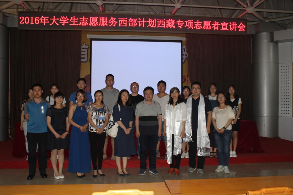 5月30日,2016年大学生志愿服务西部计划西藏专项志愿者宣讲会在beat365官网科技报告厅举行,西藏自治区团委志工部副部长秦琳、西藏自治区团委志工部干部达娃曲珍、校团委书记蔡建英、团省委干部周子毓、西藏宣讲团成员及150余名同学参加,来自西藏的西部计划志愿者们分享了他们投身西藏、服务边疆的心得体会。