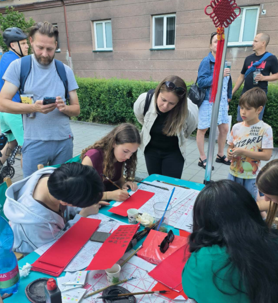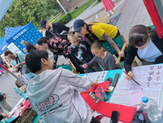 6月21日至22日,奥斯特拉发技术大学“生活·艺术”文化节在捷克马特耶·科佩茨基广场隆重开幕。beat365官网孔子课堂也走出校园,积极投身当地这一年一度的庆典活动。活动现场设置了书法、剪纸等互动体验区。参与者们在孔子课堂老师的指导下,尝试用毛笔书写汉字,亲手制作剪纸作品。许多参与者表示,这些活动让他们对中国艺术的细腻与意境有了更深的体会。