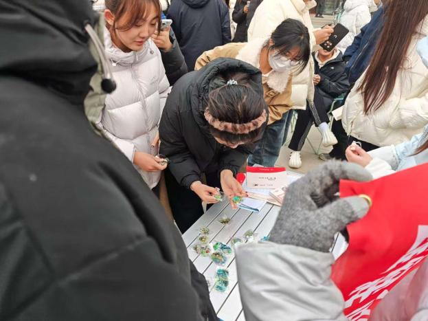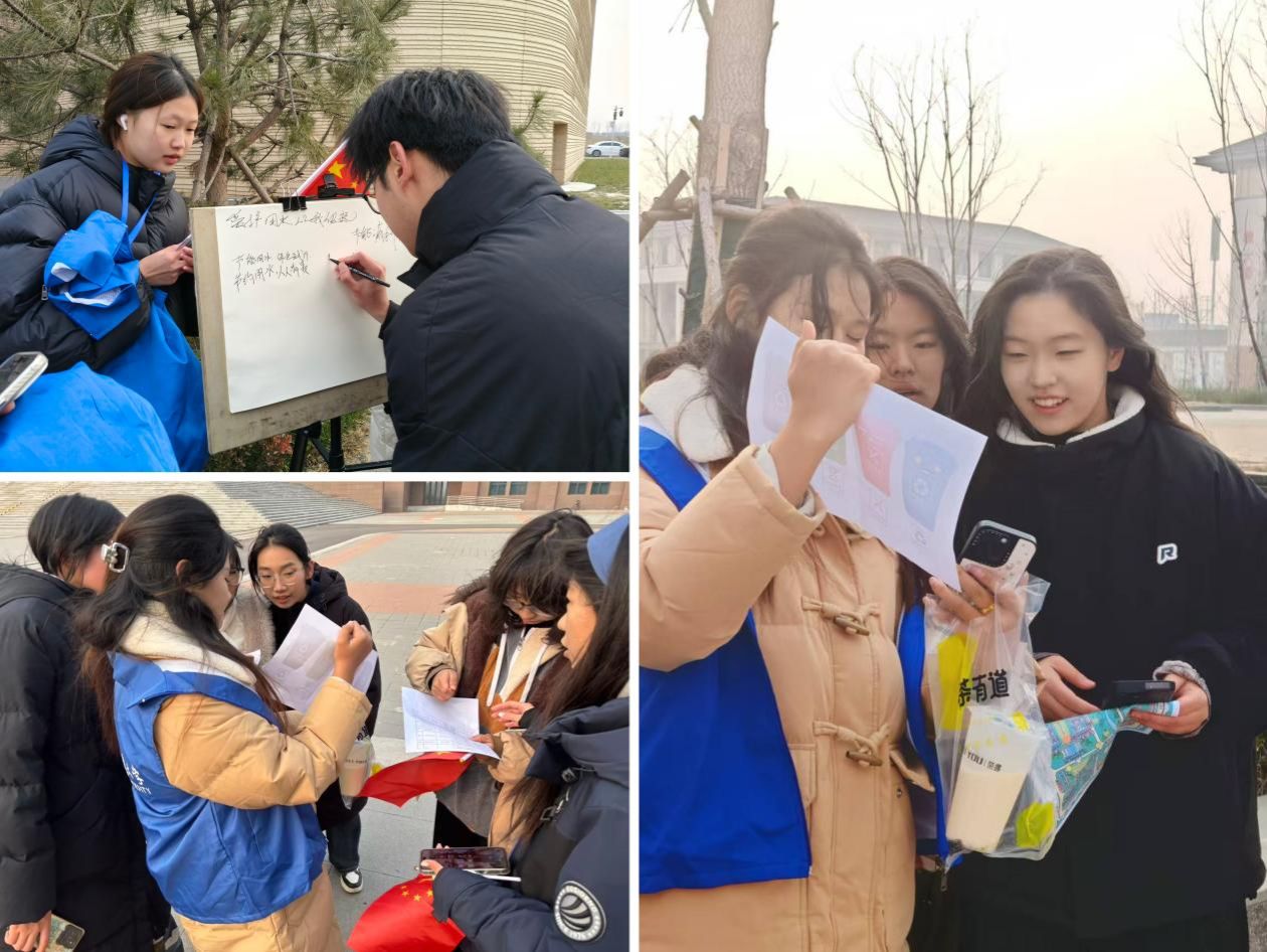 在“白翎运动场”设置的“健康无烟区”内,参与者或通过吸烟危害科普答题筑牢认知防线,或拍摄15秒戒烟宣传短视频分享至社交平台传递理念,以多元形式助力无烟校园建设;图书馆前“绿色地球站”里,环保知识快问快答与塑料垃圾分类实践双线并行,学生在辨别可回收塑料与其他垃圾的过程中,将减塑理念转化为实际能力;仰山慕水广场“交通安全站”,学子在1分钟内辨认解读安全标识,让安全常识扎根日常;博物馆“节约粮食岗”,资源保护问答与节水标语创作并行,手写标语展板展示,让勤俭美德可感可学。各参赛小组分工协作规划路线、完成闯关任务,在奔跑与互动中既锻炼了体魄,又增强了集体凝聚力,让原本枯燥的环保知识通过艺术化、场景化呈现变得生动易懂。