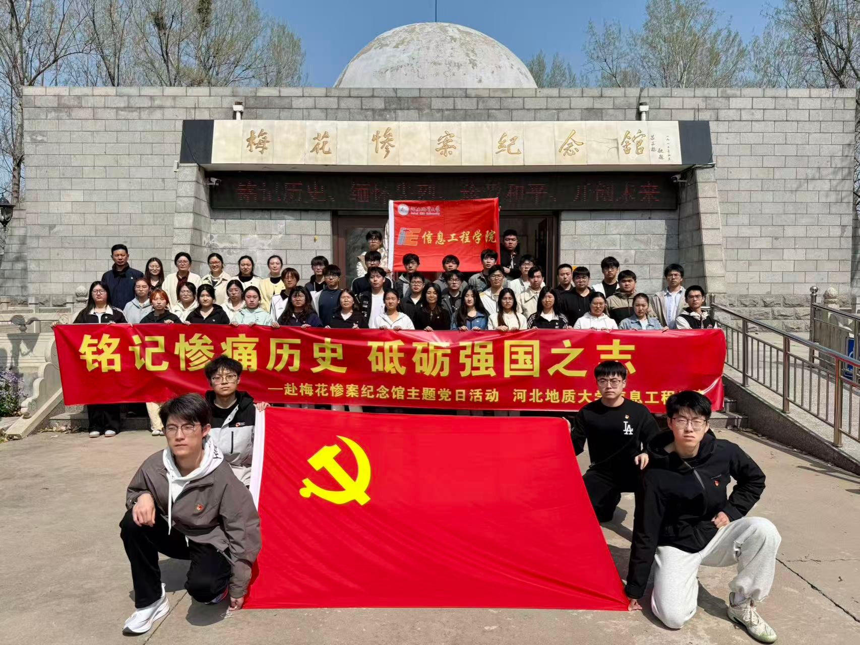 为深入学习贯彻党的二十大精神,扎实开展树立和践行正确政绩观学习教育,引导学院青年党员铭记历史、缅怀先烈,厚植爱国主义情怀,4月1日上午,信息工程学院学生党支部组织43名学生党员赴河北省爱国主义教育示范基地——藁城梅花惨案纪念馆,开展“铭记惨痛历史,砥砺强国之志”主题党日活动。