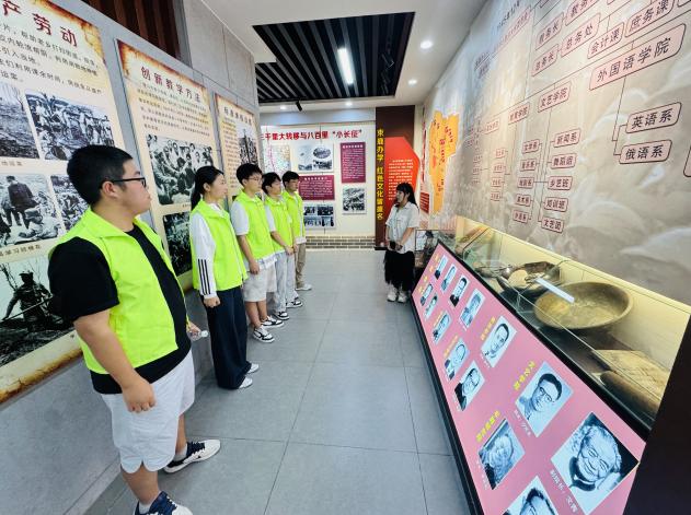 在华北联合大学束鹿史馆实践团开展了“纪念抗战胜利80周年”专题学习。一幅幅泛黄的照片、一件件锈迹斑斑的文物、一段段感人至深的文字,都在无声地诉说着80年前那段波澜壮阔的抗战历史。在史馆讲解员的带领下,实践团成员依次参观了“烽火建校”“敌后办学”“精神传承”等多个展区。在“烽火建校”展区,大家了解到华北联合大学在抗战时期的艰难创办历程。1939年,为适应抗日战争形势的需要,华北联合大学在延安成立,后迁至晋察冀边区,其中一部分曾在束鹿(今辛集)办学。当时,办学条件极其艰苦,没有固定的校舍,师生们就在破庙、民房里上课;缺乏教学器材,大家就自己动手制作;面临敌人的扫荡,他们一边坚持学习,一边参与游击战争。在“敌后办学”展区,一组反映师生们参与支前活动的照片吸引了大家的目光。照片中,学生们有的在田间帮助农民收割粮食,有的在街头宣传抗日思想,有的在后方为前线战士制作棉衣。华北联合大学始终坚持“教育为抗战服务”的宗旨,师生们不仅注重知识学习,更积极投身到抗日救亡的实践中。他们用自己的实际行动,诠释了爱国与担当。