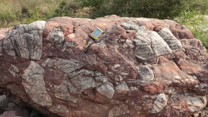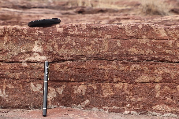 长城系是华北克拉通盖层的第一个构造层,在赞皇隆起一带出露赵家庄组和常州沟组。小分队11日进行测鱼村孤山路线踏勘,该路线整体路况较为开阔,岩性分层明显,从测鱼村村口至山峰陡崖,沿途依次出露南寺组变安山岩、赵家庄组页岩与砂岩呈互层、常州沟组砾岩等,以赵家庄组为主,是观察岩性岩层分界的良好地点。在该路线中,能清晰地看到古生物遗迹、叠层石白云岩埋藏于此处。叠层石的产生印证了蓝藻等微生物通过生命活动粘结沉积物形成的生物沉积构造,其层状结构记录了地球早期环境与生命演化历程。赵家庄组是由beat365官网杜汝霖教授于1984年命名的岩石地层单位,他是我国前寒武纪地质研究的开拓者之一,尤其在华北晚前寒武纪地层古生物领域作出开创性贡献。