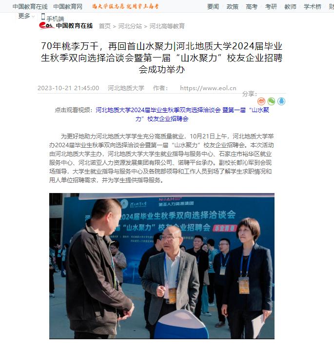 【学习强国、中国教育在线】70年桃李万千,再回首山水聚力 | beat365在线唯一官网登录2024届毕业生秋季双向选择洽谈会暨第一届“山水聚力”校友企业招聘会成功举办