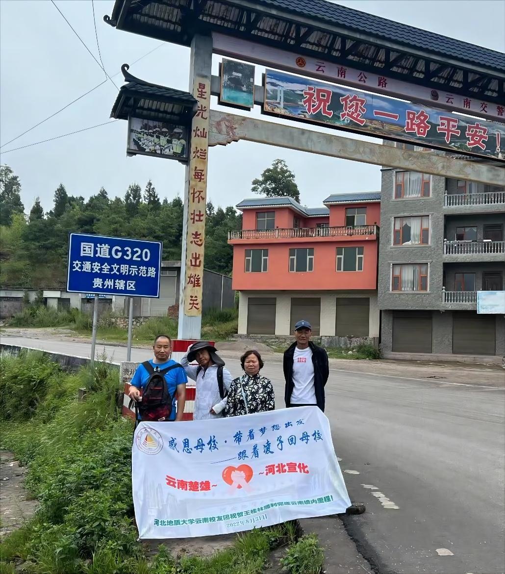 从楚雄出发,自发前来送行的校友给他送上真挚的关怀和祝福。在云南富源到贵州红果的行程中,84级校友曾汝诚陪同凌子穿行云贵,共叙校友之情。一路走来,凌子并不孤单,素昧平生的各界校友接续伴走,地大之情,母校之爱,将他们联结在一起。徒步的过程很辛苦,却无比值得。
