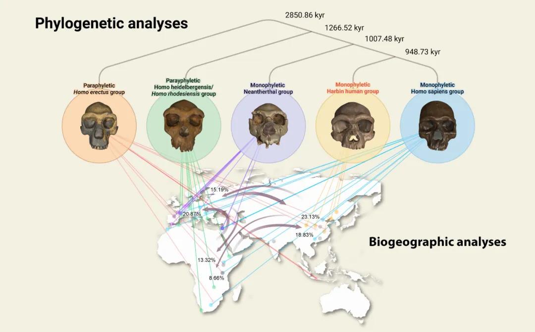 得到人属演化关系树后,“龙人”研究团队试图求解另一个人类演化史研究领域的重大命题和难题——近300万年来,人属里的各个种群是在何地产生,并如何在全球范围里迁徙、扩散的。