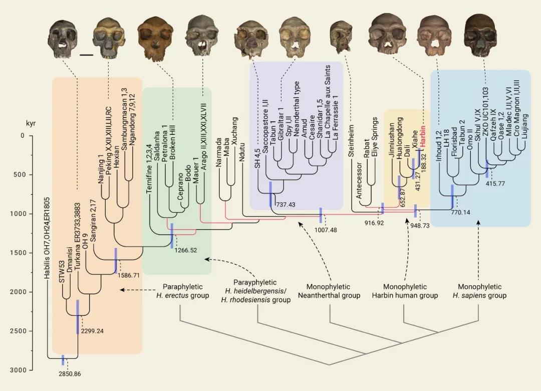 换句话说,该系统演化分析不支持部分中国学者持有的“东亚地区连续进化学说”——无论是今天的中国人(智人),还是新发现的“龙人”支系,都不是北京周口店人、元谋人为代表的中国直立人的后代。