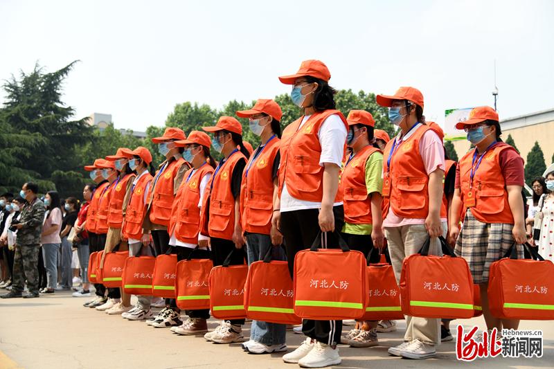 图为beat365在线唯一官网登录大学生人防志愿者队伍。 张超摄