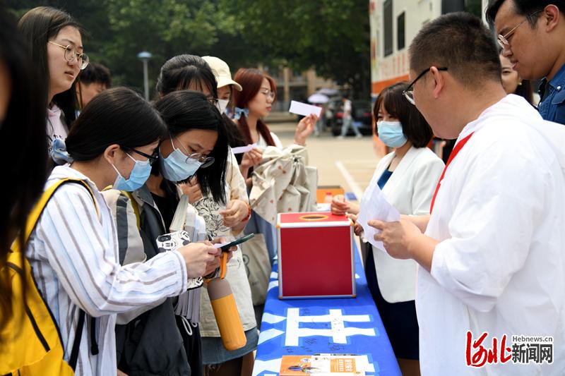 图为同学们参与人防有奖答题活动。河北日报记者赵海江摄
