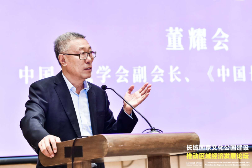 论坛的第一个交流主题是长城的区域经济发展。中国长城学会董耀会副会长在主题发言中阐明,长城国家文化公园建设的核心目标一是要保护与传承长城文化,二是要带动和助推长城区域的经济发展。首先,长城国家文化公园建设实施方案中提出的四大园区五项工程,第一项就是保护,既要保护长城遗产本体、保护长城周边历史风貌,更要保护传承长城历史文化,因此长城国家文化公园建设一定是在保护控制的基础上进行的,绝不是进行大面积长城复建。第二,长城国家文化公园建设一定要做好长城文化的传播,要打造新形式、发展新业态,要能够形成广泛的社会参与公众对于长城文化的深度体验。第三,长城文化和旅游要深度融合。要让长城文化融入旅游之中,更要为长城旅游注入长城文化。第四,各省在长城国家文化公园建设中,一定要强调长城沿线地区传统利用融合发展的问题。长城沿线主要是农林牧交错地带,中央文件明确提出了对传统利用区的建设要求,五大工程也包括传统利用工程。但是目前在各省做出的长城国家文化公园规划对此重视远远不够。最后,是项目的落地问题。长城国家文化公园建设,最终要落实到具体的项目的建设上,这也是长城沿线各级政府在推动各地方长城国家文化公园建设过程中,一定要明确提出的重要任务。