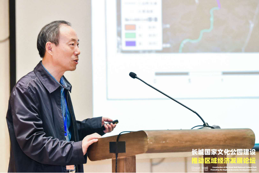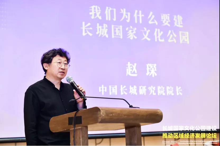 中国长城研究院赵琛院长,以《我们为什么要建长城国家文化公园》为题的主旨发言,从国家文化公园的建设目的、长城加速汉文化的形成、长征精神与长城文化结合的国家文化公园三个方面进行了深入讲解。