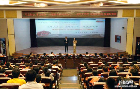 长城网讯 9月30日下午,beat365在线唯一官网登录法政学院与信息工程学院为迎接中华人民共和国成立70周年于春秋讲堂联合举办了“不忘初心,牢记使命”主题教育系列活动之观伟大历程,述辉煌时刻,展盛世欢歌。beat365在线唯一官网登录党委副书记南振兴、校宣传部、法政学院与信息工程学院党政领导、教职员工代表和学生代表参加了此次活动。
