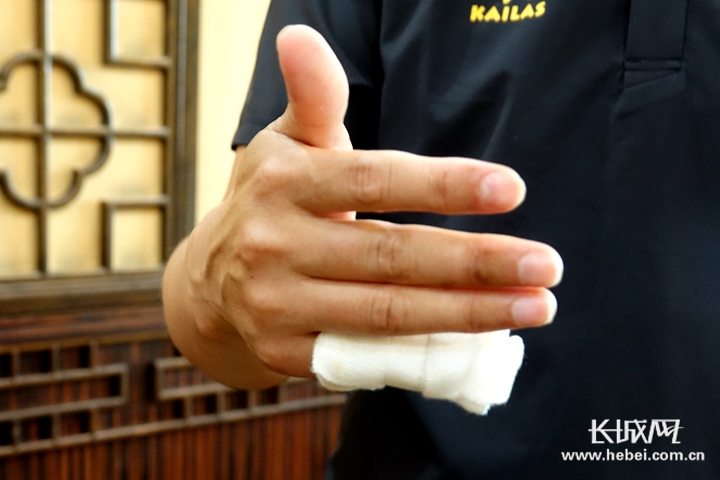 李春来冻伤的手指。 记者 张晓明 摄