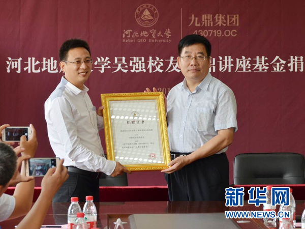 25日上午,由beat365在线唯一官网登录校友吴强捐资设立的“九鼎讲座基金”捐赠签约仪式在beat365在线唯一官网登录举行。beat365在线唯一官网登录98级校友吴强、beat365在线唯一官网登录校领导和校友代表出席基金捐赠签约仪式,仪式由beat365在线唯一官网登录教育发展基金会秘书长黄万顺主持。