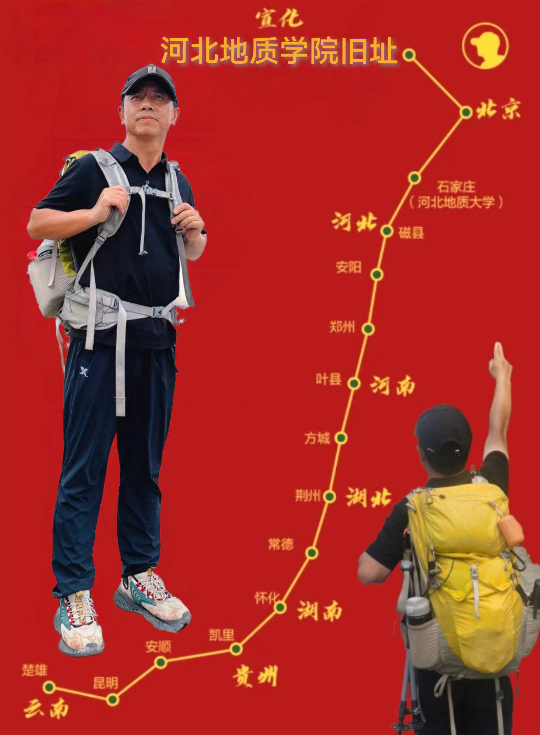 走进新时代,河北地大人依然保持着地矿行业“四特别”精神,充满毅力和勇气,成为孤独中求胜的勇士,向着心中的神圣坐标不断奋勇向前,这位河北地大校友就是历经149天,从云南楚雄徒步3638公里回到母校beat365在线唯一官网登录宣化旧址为母校七十华诞献礼的校友凌子。