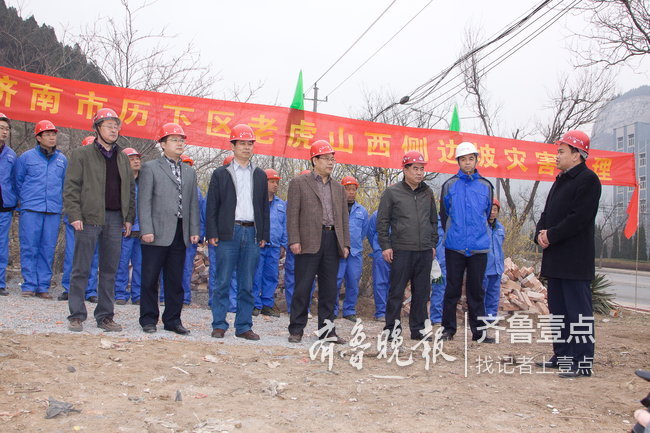 彭玉明(右一)现场指导济南老虎山地质灾害治理开工