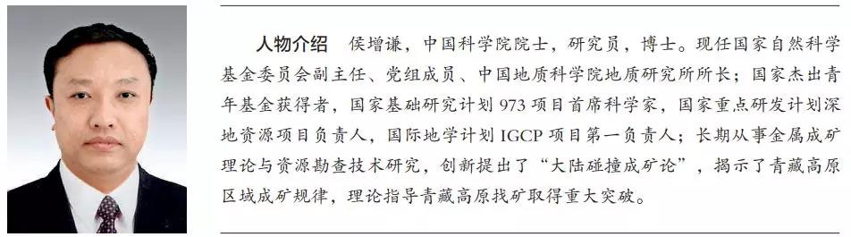 在这个漫长的历程中,侯增谦时刻以“学了,就要学到底,学精学透;做了,就要做到好,做大做强”的治学理念要求自己。40 年间,他先后主持 了国家自然科学基金面上项目、重点项目、重大国际合作项目,国家 973 项目、科技攻关、国家深地资源开采专项等重要科研项目几十项, 并在金属成矿理论和勘查评价技术等方面取得创新性、系统性的科研成果。他创建了碰撞造山带成矿 理论 , 建立了碰撞型斑岩铜矿、褶冲系铅锌矿、碳 酸岩型稀土矿等成矿新模型;阐明了大陆碰撞过程中金属富集机制和成矿机理,揭示了碰撞造山带成矿系统及其区域成矿规律,为青藏高原取得重大找矿突破提供了重要指导。他获得了中国地质学会“金锤奖”、国土资源部首届杰出青年、中国优秀青年科技创新奖、黄汲清青年科技奖、李四光地质科学奖等荣誉称号,获得国家科技进步奖特等奖、国家科技进步奖一等奖、国土资源科技成果一等奖等多个国家级和省部级成果奖项。他主编了国际英文期刊专辑 4 部,出版中文专著 4 部,在 Geology, EPSL,Economic Geology 等国际地学主流刊物上发表 SCI 论文180 余篇,SCI 他引 5 000 余次,并有 8 篇论文被 SCI 引用进入学科前 1%。