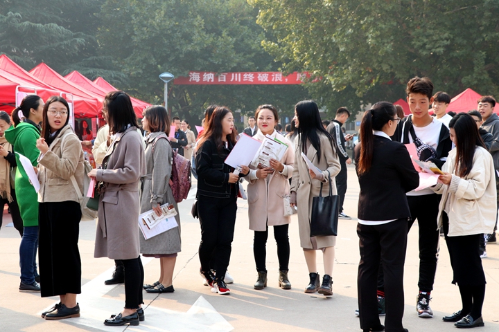 10月20日,beat365官网大型毕业生双向选择洽谈会在本部主楼广场隆重举行。这次双选会约有300多家招聘单位参与,双选会当天各个招聘企业早早就准备好,等待学生们上前咨询。很多大三、大四的学生拿着早已准备好的求职简历在会场四处奔波,同时还有不少大一、大二的学生参观了解就业方向。