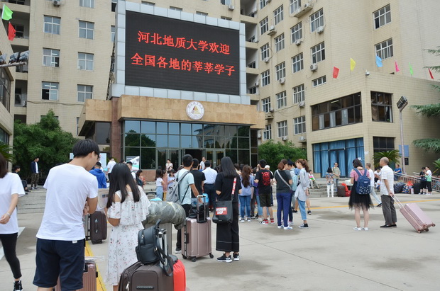 9月2日,开学第二天,迎新工作仍在如火如荼的进行着。九月,本是秋高气爽的时候,可石家庄还没褪去她的燥热,但是炎热的天气丝毫掩盖不住新生及家长和学校工作人员的热情。