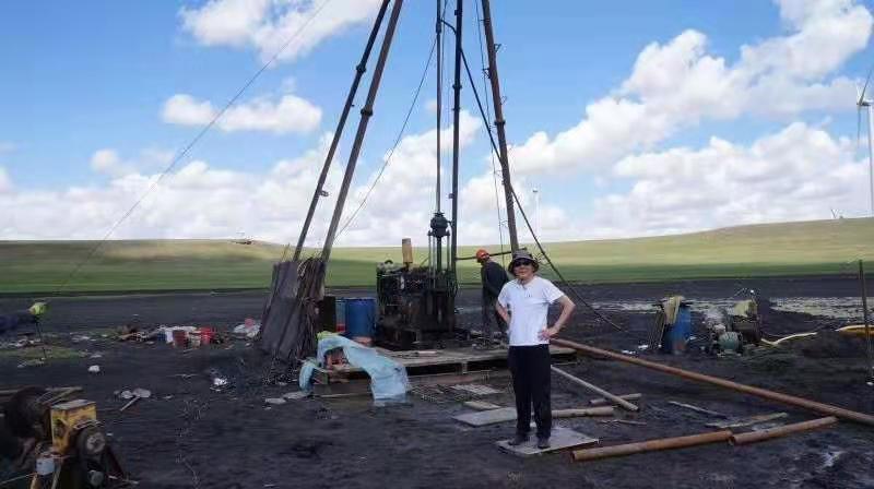 丁毅教授在玛珥式火山口进行地质钻探科学实验
