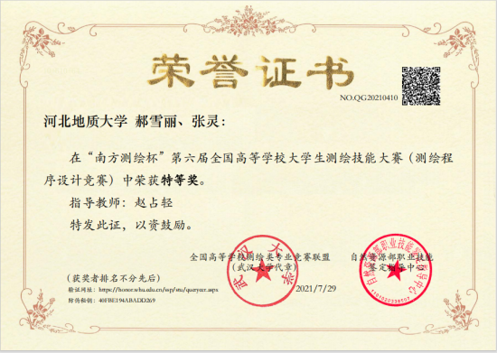 自投身教育事业以来,赵占轻始终秉持“以学生为中心”的理念,将实践创新能力培养融入教学全过程。她注重培养学生的实践和创新能力,指导国家级和省级大学生创新创业项目多项,带领学生在实践中破解真问题:其指导的团队在“全国大学生测绘学科创新创业智能大赛”中斩获测绘程序设计特等奖,她本人也获评“优秀指导教师”。为打通产学研壁垒,她依托科研项目为学生定制毕业设计课题,让学生在真实科研场景中磨砺本领;她协助建立实习基地,架起从课堂到职场的桥梁,助力学子“知行合一”。