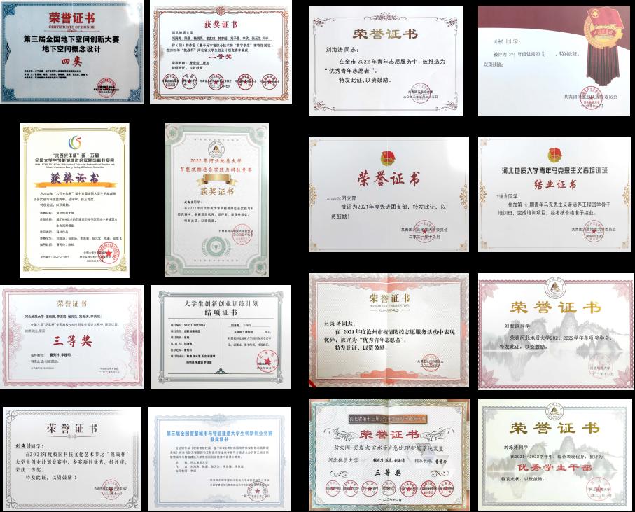 11.2022年9月,在第六届城市地下空间工程专业大学生模型设计竞赛中荣获国家级优秀奖;