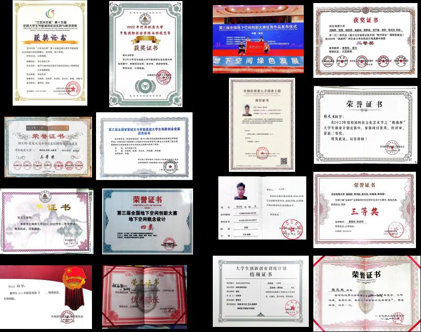 创新征程,立足当下。在学好专业知识的同时,我带领身边同学勇于创新。曾荣获节能减排社会实践与科技竞赛国家三等奖和校级特等奖、品茗杯高校BIM应用设计大赛国家三等奖、地下空间创新大赛国家级优秀作品、城市地下空间工程专业大学生模型设计竞赛国家级优秀作品、挑战杯大学生创业计划竞赛省级二等奖、工业设计创新大赛省级三等奖等国家级、省市级奖项十余项,并参加国内行业高峰论坛一次(地下空间绿色发展高峰论坛)。