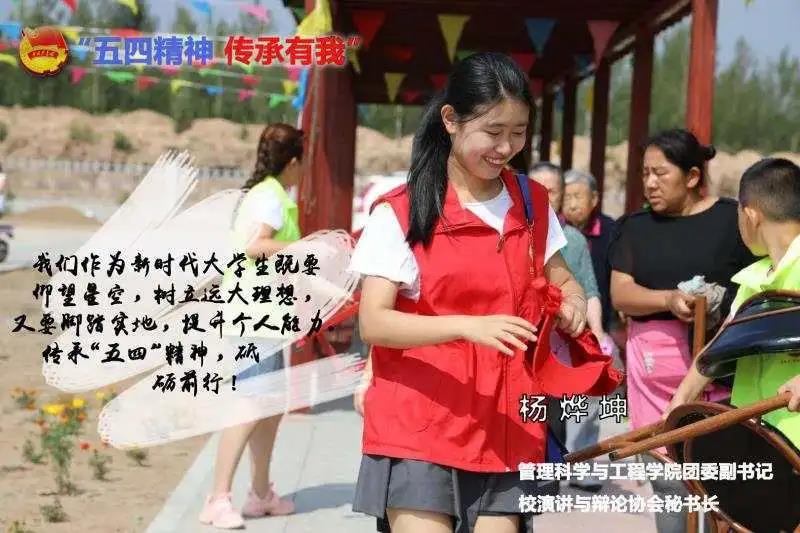 五四青年奖章获得者是管理科学与工程学院2017级杨烨坤,现担任学院团委副书记、校演讲与辩论协会秘书长。