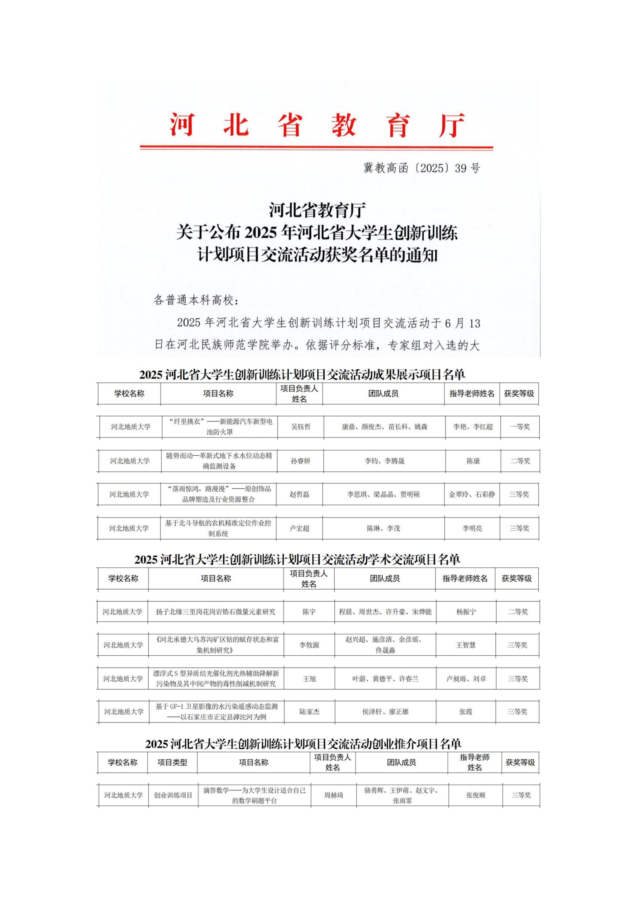 近日,河北省教育厅公布2025河北省大学生创新训练计划项目交流活动获奖名单。beat365官网入选现场赛的9个项目,获一等奖1项,二等奖2项,三等奖6项,最佳创意项目1项。