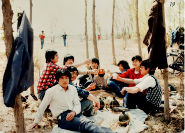 同学们上午十点钟出发,先遣队伍由七名男同学分别骑着借来的七辆自行车,满载着春游活动所需的物资,兴致勃勃地驶向宣化洋河,选择在大洋河北岸的小树林里安营扎寨。其他没有自行车的同学则有说有笑地徒步前往。骑车赶先到达洋河的同学们,立即卸下车上的物品,不顾劳累,就又骑车返回,去接路上正在步行的同学。