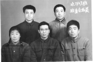 7303班委会照片中,前排是王满台(副班长)、于佳平(班长)、翟純贵(体育委员),后排是我(学习委员)和梁玉峰(生活委员)。班里还有党支部:吕复生、冯新亮,团支部:和泰、斯琴。