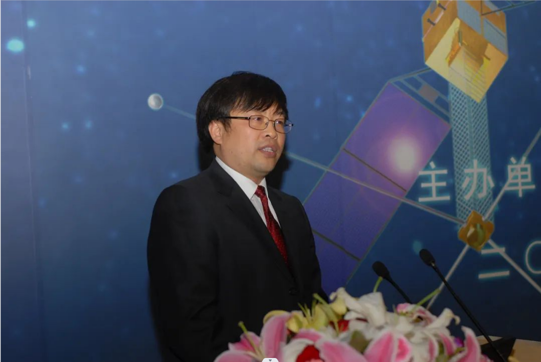 ▲2008年4月,申旭辉在“张衡一号”卫星计划用户需求大会上作报告