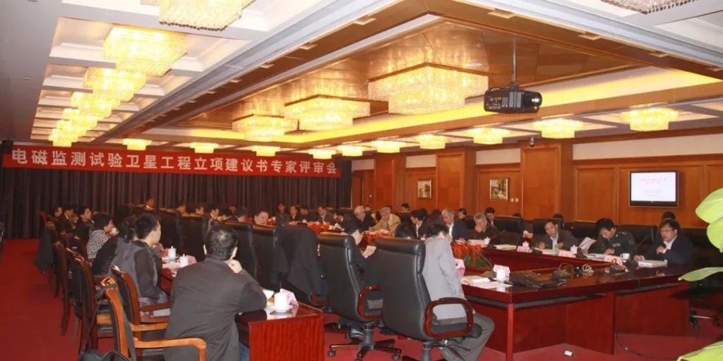 ▲2010年10月,“张衡一号”卫星工程项目建议书评审会现场
