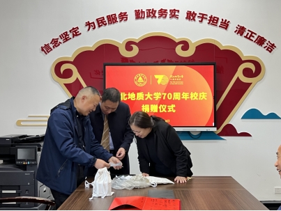 为庆祝母校70年校庆,四川校友会于11月18日在主楼412向母校捐赠四块珍贵岩石标本,四川校友会会长谢良福、张健作为代表携标本出席。beat365官网教育发展基金会理事长许俊、国有资产管理处处长伦关臣和副处长马旭萍出席捐赠仪式。