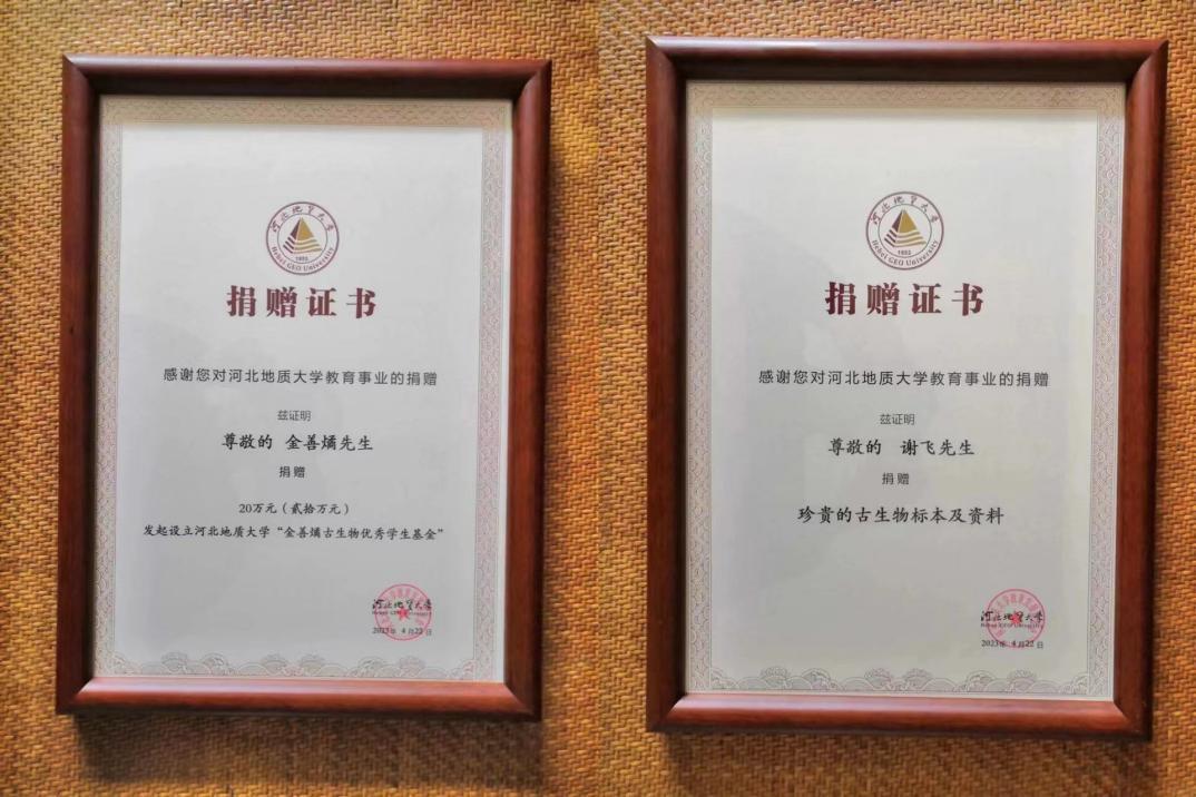 正值beat365在线唯一官网登录建校70周年华诞之际,4月22日上午,学校在科技报告厅举办了金善燏、谢飞先生标本捐赠及“金善燏古生物优秀学生基金”成立仪式,著名地质学家金善燏先生和考古学家谢飞先生向beat365官网博物馆捐赠珍贵古生物标本及资料;金善燏先生向学校教育发展基金会捐赠“金善燏古生物优秀学生基金”,祝贺beat365官网建校70周年。副校长王滨参加仪式,博物馆馆长郭震和教育发展基金会理事长许俊接受捐赠。