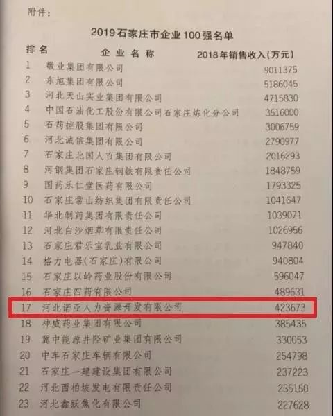 据悉,为提高石家庄市企业的知名度,推动全市企业在行业标杆的影响力下持续做大做强,石家庄市企业联合会与石家庄市企业家协会依据企业营业收入等相关指标,经评审协会审定,在市政府经济主管部门的认定下,根据国际通行的排序方式,全口径地对石家庄市企业进行了百强排序工作。