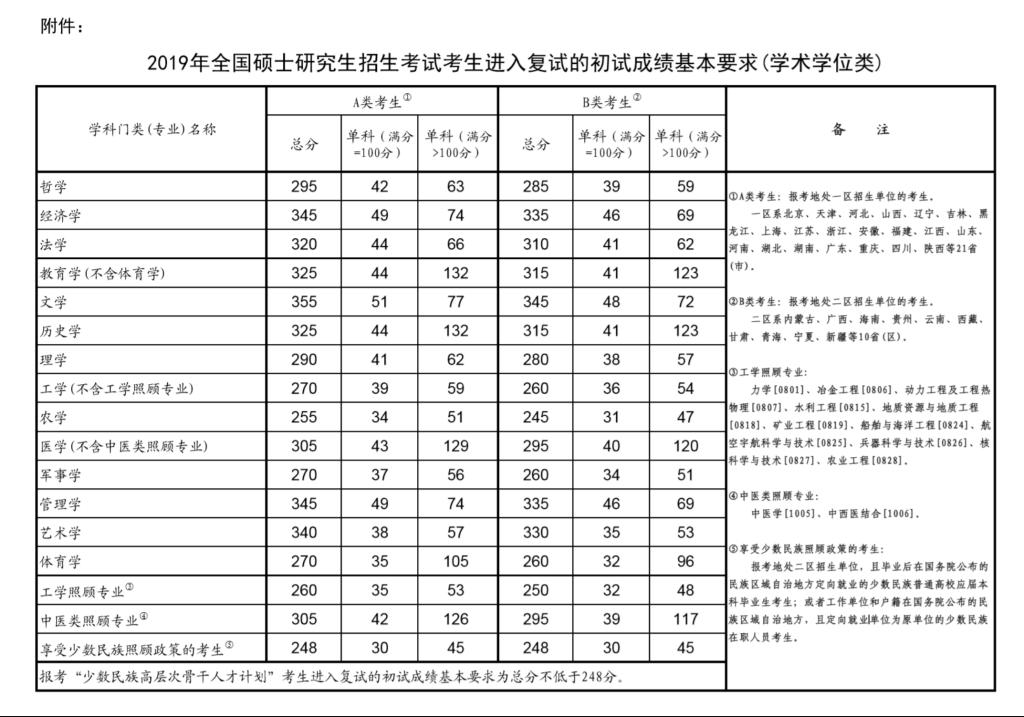2019年全国硕士研究生招生考试考生进入复试的初试成绩基本要求(学术学位类、专业学位类).pdf